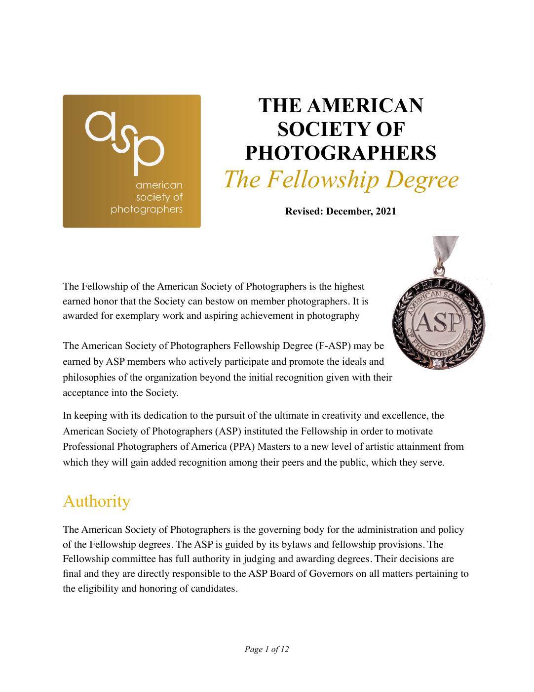 The Fellowship of the American Society of Photographers (F-ASP) represents the highest earned honor bestowed by the Society. Reserved for members who exemplify extraordinary artistic vision, technical mastery, and a sustained commitment to the ideals of ASP, the Fellowship recognizes not only excellence in photographic achievement but also a profound dedication to the advancement of the profession. More than a distinction, the ASP Fellowship is a call to leadership—a recognition of those who actively contribute to the growth, education, and inspiration of the photographic community. It is awarded to members who, having already achieved the prestigious PPA Master Degree, continue to reach new heights in creativity and service. Instituted to inspire PPA Masters toward deeper artistic exploration, the Fellowship serves as a testament to the transformative power of imagery. It stands as a symbol of personal evolution, peer recognition, and the lasting impact of those whose work uplifts both the industry and the public it serves.